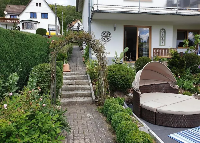 Zum Himmelreich公寓为客人提供免费停车场,防过敏房间和指定吸烟区,位于Wutha-Farnroda. 公寓设有1间卧室,还配备小厨房.